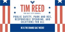 My name is Tim Reed, and I am honored to be running for a seat on the Galt City Council. With a deep-rooted commitment to public service and a passion for community empowerment, I am dedicated to representing the voices and values of the residents of Galt.